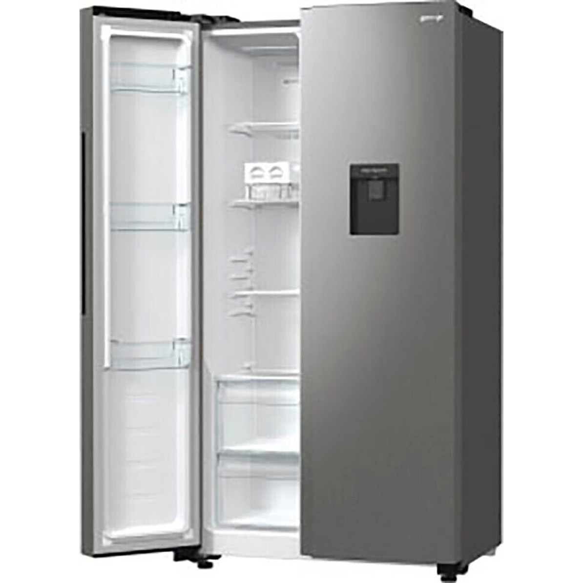 Der Gorenje Grau-(No-Frost)-Side-by-Side-Kühlschrank (CrispZone-FastFreeze) NRR9185EAXLWD kombiniert modernes Design mit hoher Funktionalität und ist ideal für Familien. Mit einem großzügigen Gesamtinhalt von 547 Litern, bietet er viel Platz für Ihre Lebensmittel. Der Kühlbereich hat ein Fassungsvermögen von 355 Litern, während der Gefrierbereich ebenfalls beeindruckende 192 Liter fasst. Ausgestattet mit einer No-Frost-Technologie, bleiben die Lebensmittel frisch und die lästige Eisbildung entfällt. Zudem sorgt die Abtauautomatik im Kühlteil für eine mühelose Wartung.