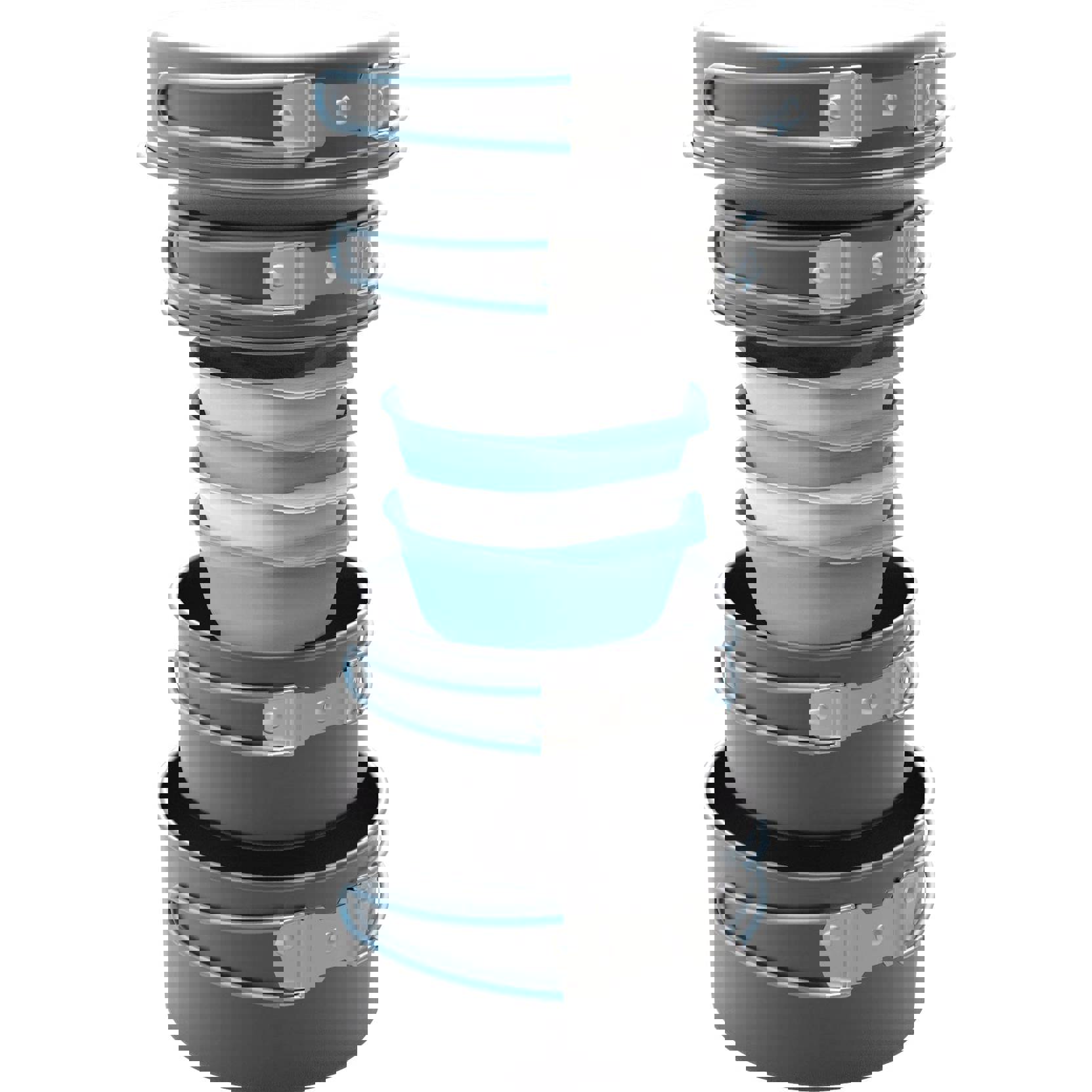 Das Highlander Kochset in den trendigen Farben Grau und Türkis ist der ideale Begleiter für Ihre Outdoor-Abenteuer. Mit einem Durchmesser von 190 mm und einer Höhe von 145 mm lässt sich dieses kompakte Set leicht verstauen und transportieren. Hergestellt aus hochwertigem, eloxiertem Aluminium und robustem Kunststoff, vereint es Leichtigkeit und Langlebigkeit. Das Set beinhaltet alles, was Sie für das Kochen im Freien benötigen: einen großen Topf (1,9 l), einen kleineren Topf (1,1 l), sowie zwei Pfannen mit Durchmessern von 17 cm und 15 cm. Jede Pfanne und jeder Topf ist mit einem klappbaren, silikonumfassten Griff ausgestattet, der eine sichere Handhabung garantiert. Das Kochset kann bequem in der mitgelieferten Tragetasche verstaut werden, was es zu einem perfekten und praktischen Begleiter für jedes Campingerlebnis macht.