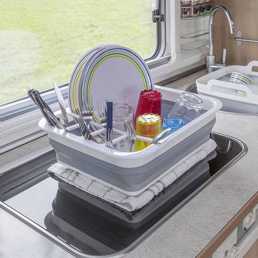 Der ProPlus Geschirrtrockner ist das perfekte Zubehör für Camping und Reisen. Mit seinem kompakten Design eignet er sich hervorragend für den Einsatz im Wohnwagen, Wohnmobil und Zelt. So bleibt Ihr Geschirr immer trocken und sauber - ideal für einen entspannten Urlaub im Freien.