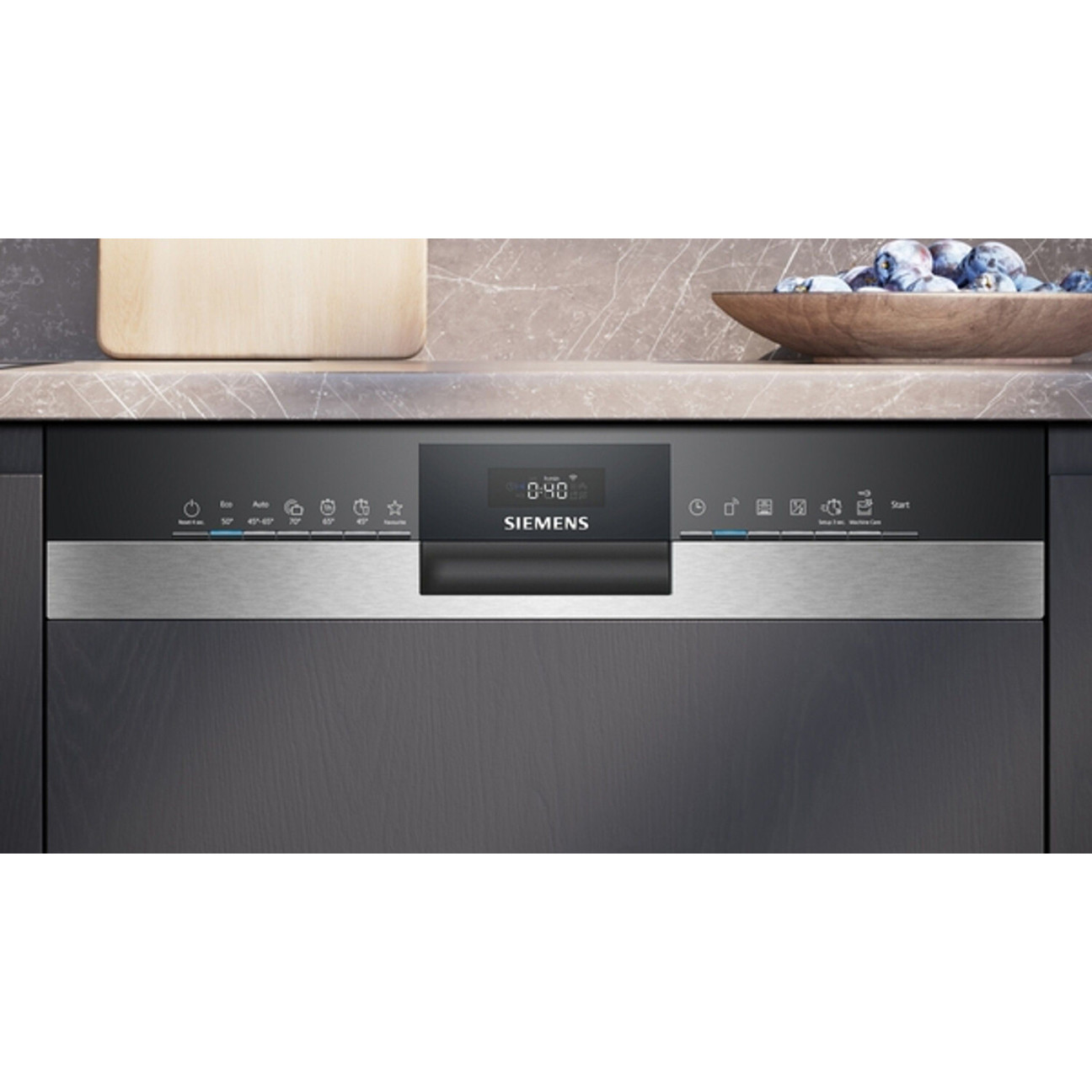 Entdecken Sie den Siemens Einbaugeschirrspüler der iQ300 Serie (SN53ES04TE), ein leistungsstarkes Gerät, das speziell für Haushalte von 3-4 Personen entwickelt wurde. Mit einer Energieeffizienzklasse von B und einem niedrigen Wasserverbrauch von nur 9 Litern pro Waschzyklus, sorgt dieser Geschirrspüler für eine umweltfreundliche und kosteneffiziente Reinigung. Genießen Sie die leisen 44 dB(A) Betriebsgeräusche und die moderne WLAN-Anbindung durch Home Connect, die Ihnen ermöglicht, das Gerät bequem über eine App zu steuern. Darüber hinaus bietet die integrierte Geräuschdämmung und das Wasserschutzsystem höchste Sicherheit und Komfort.